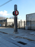The poles, one at 8th street and another at 21st street, have long intrigued me. They are of a latticed metal construction and certainly have an industrial flavor to them.